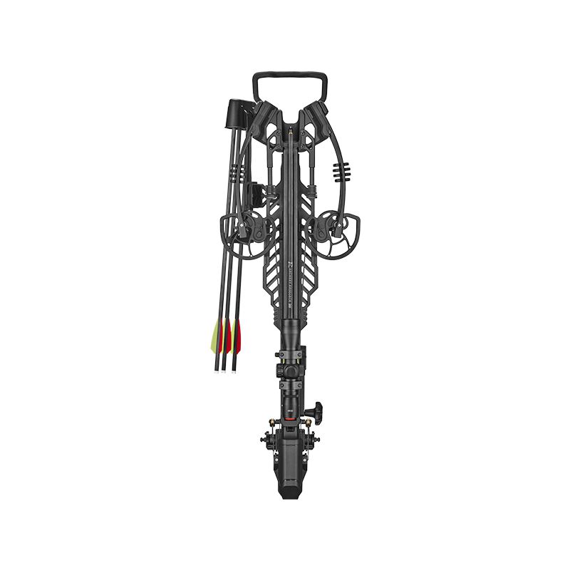 Zum Lieferumfang gehört die Armbrust inklusive einem 3‑Bolzen‑Köcher, 3 Carbonbolzen à 20″, ein 4×32 Zielfernrohr mit beleuchtetem Absehen, eine Sicherheitsbrille, Wachs, ein Kabelgleiter und ein Fusssteigbügel, so dass du direkt startklar bist.