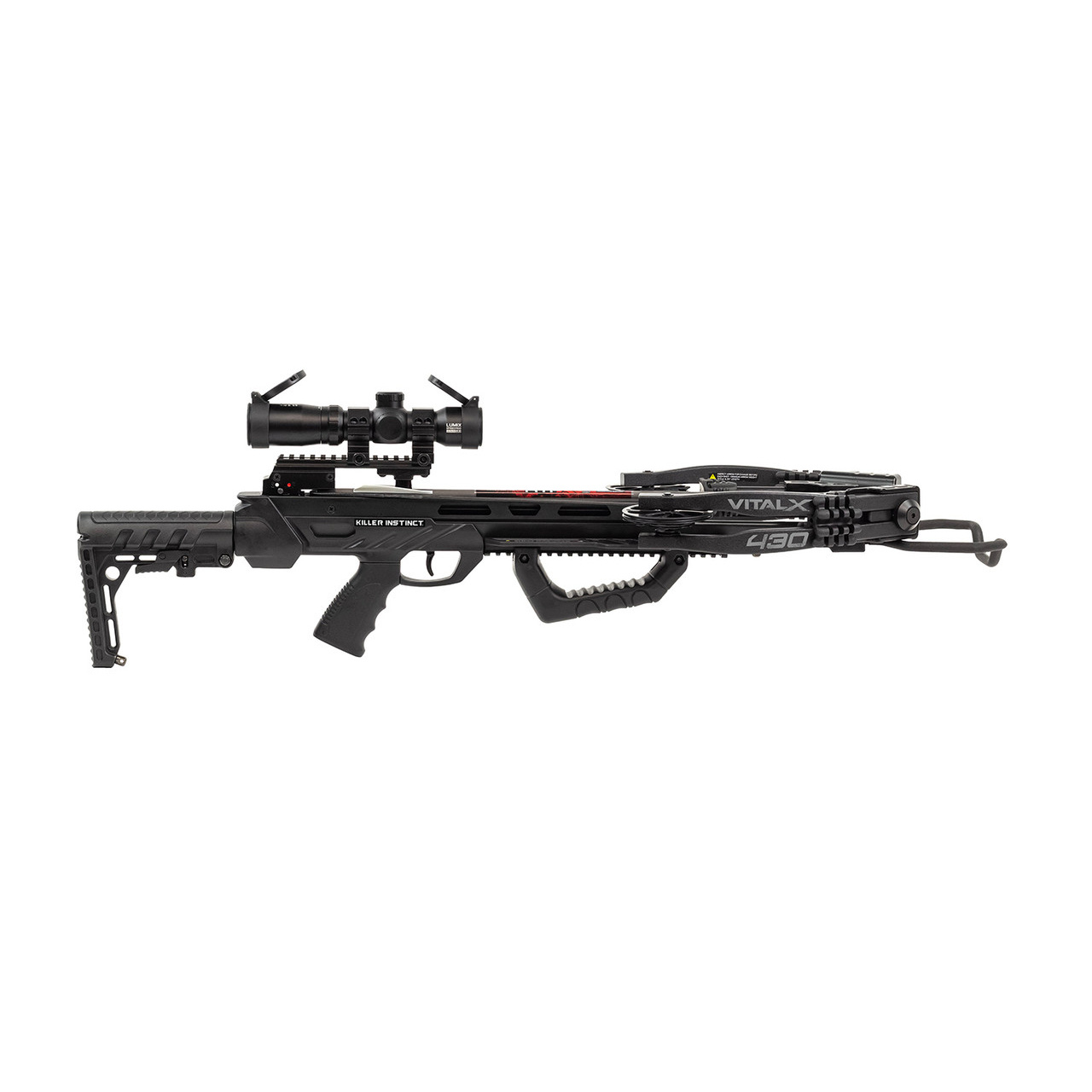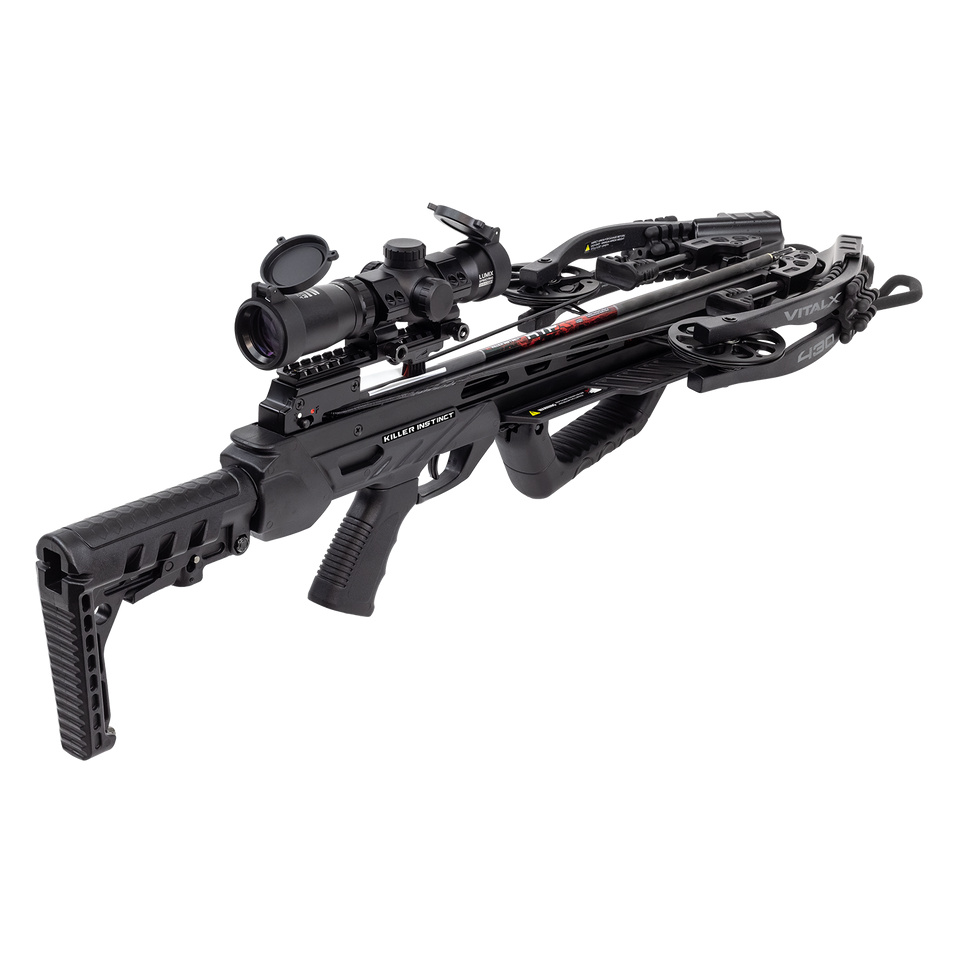 Die Killer Instinct Vital‑X 430 Elite ist eine robuste Kompaktarmbrust mit 430fps, X‑Cam™‑Technologie und CNC‑Aluminium‑Schiene. Das Elite‑Kit umfasst Zielfernrohr, Köcher, 4 HYPR™‑Bolts, Spannhilfe und Rail‑Lube. Durch verstellbaren Schaft, Vordergriff und Leerschuss‑Sicherung bietet sie dir präzises, komfortables Schiessen.